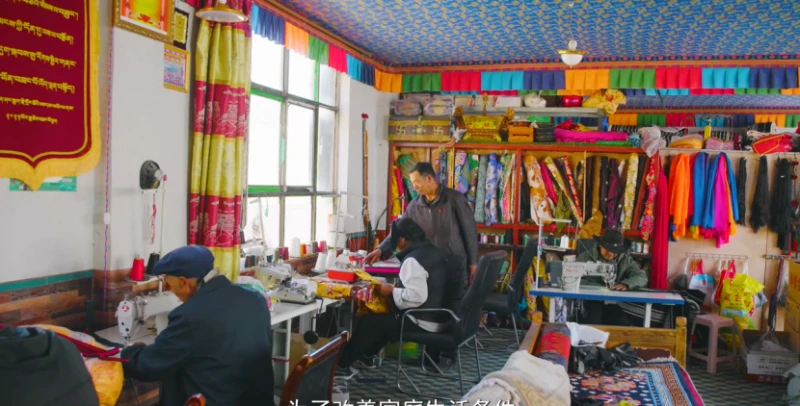 As the hometown of Princess Zhumu of Gesar and an important town on the route of the 18th Army of the People's Liberation Army into Tibet, Suoxian County has a profound cultural heritage. In the "Dream Weaving Space" in Jiruotang Village, Rongbu Town, all kinds of handicrafts are on display, and Tsering Dorje is intently sewing leather goods with a bone needle.